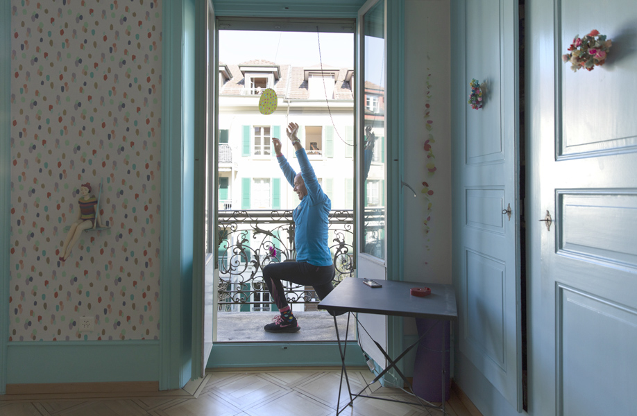 Während der Corona-Pandemie und infolge geschlossener Turnhallen machte ich meinen Balkon zur Bühne meiner Fitnesskurse. Bald wurden die spontanen Samstag-Trainings für viele Anwohnerinnen und Passanten zum Ritual. Mehrere Dutzend Personen trainierten jeweils auf Balkonen, an offenen Fenstern und auf dem Trottoir zu mitreissender Musik. Das Balkon-Fitness war geboren.